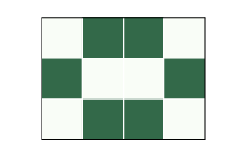 其他图案在“振荡”;也就是说,它们随着时间而改变,但最终返回到它们的起始状态(只要它们不与另一个图案冲突)。例如,图?展示了一种称为“蟾蜍”的图案,它是在两种状态之间交替的振荡图案。这个振荡图案的“周期”是二。